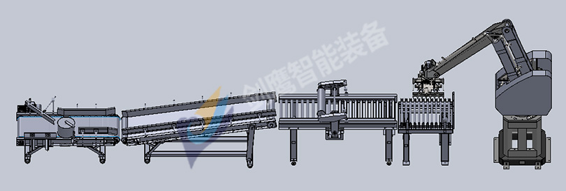 倒包輸送機(jī)-------爬坡輸送機(jī)-------整形輸送機(jī)-------待碼輥道機(jī)------碼垛機(jī)